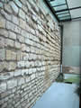 Le mur est maintenant à l'abri des intempéries et sa partie extérieure fait face à une nouvelle caserne de pompiers
